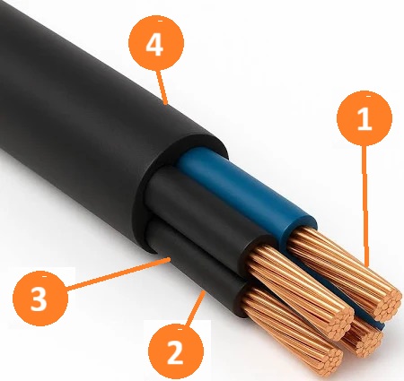 Кабель гнучкий з мідними жилами, з ізоляцією і оболонкою з термоеластопласту.